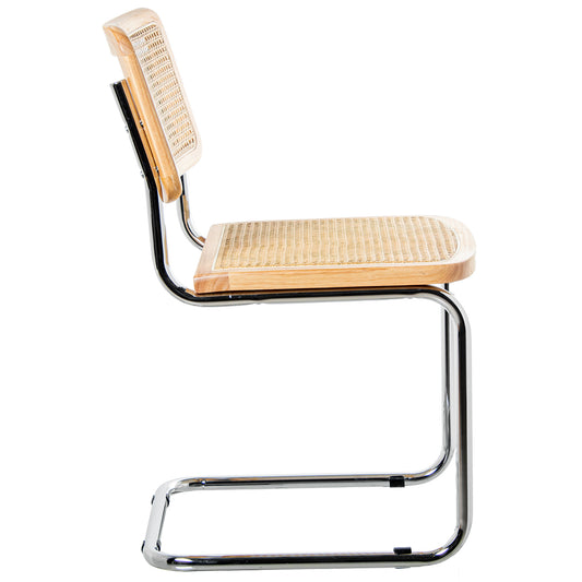 SILLA MADERA/MIMBRE PATAS META L CROMADO