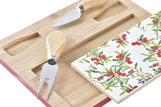 TABLA APERITIVO SET 4 BAMBU GRES 24:5X20X1:2 ROJO