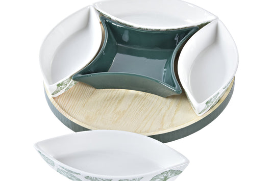 TABLA APERITIVO SET 6 GRES MDF 22X22X1 HOJAS VERDE