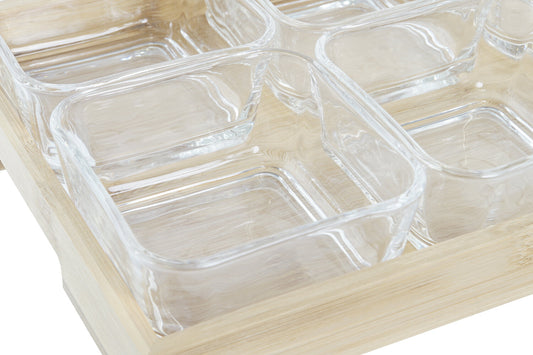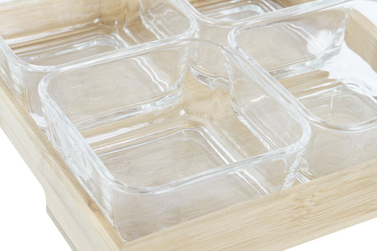 TABLA APERITIVO SET 5 CRISTAL BAMBU 21X21X6 280ML