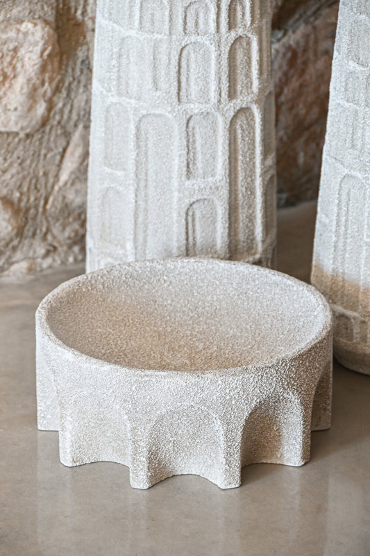 CENTRO MESA RESINA 26X26X11 RUGOSO BLANCO