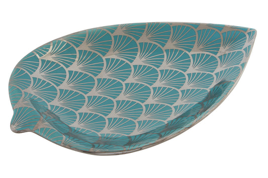CENTRO MESA PORCELANA 27:5X16X3 HOJA CROMADO