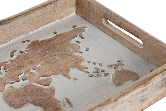 BANDEJA DECORACION MANGO 39X23X6 MAPAMUNDI MARRON