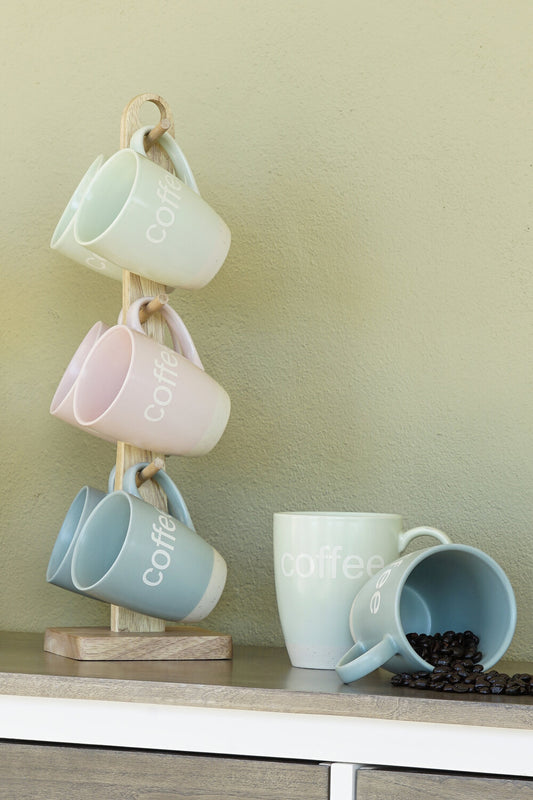 MUG SET 6 GRES RUBBERWOOD ROSA