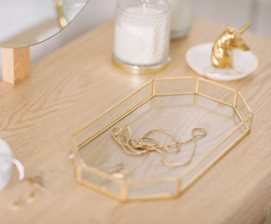 BANDEJA VIDRIO MET DORA 27X15:5X2:5