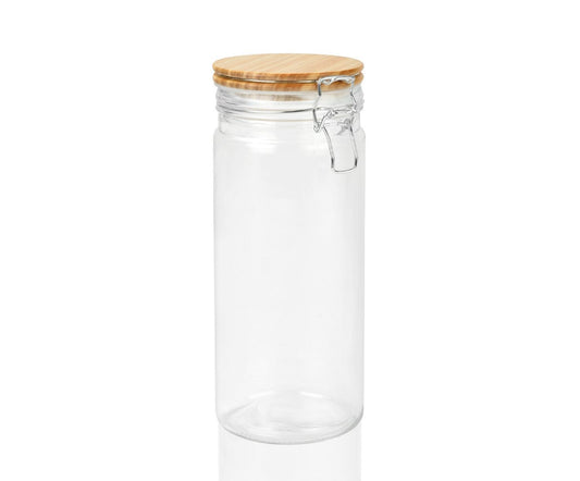 BOTE VIDRIO CLIP TAPA MADERA 1300ML