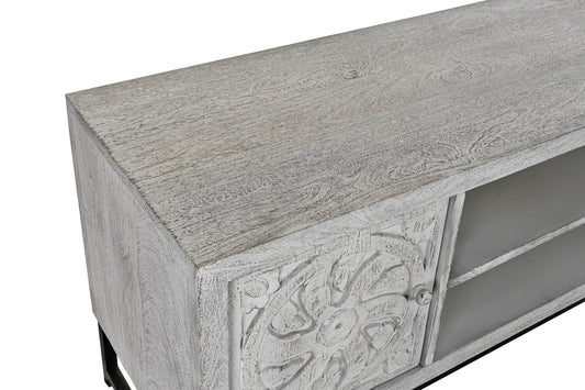 MUEBLE TV MANGO METAL 130X40X55 MANDALA BLANCO