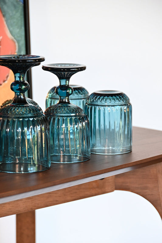 COPA SET 6 CRISTAL 8X8X14:5 260ML RAYADO AZUL