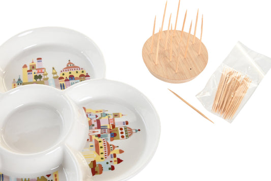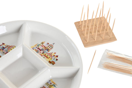 APERITIVO SET 8 PORCELANA BAMBU 26X9X4 MULTICOLOR