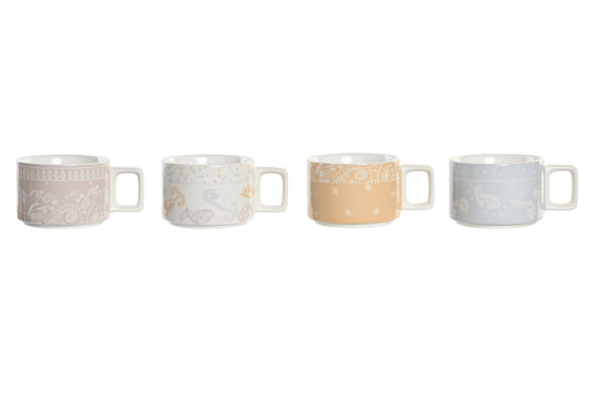 CAFE SET 4 DOLOMITE METAL 11X11X27 260 ML: CORAL