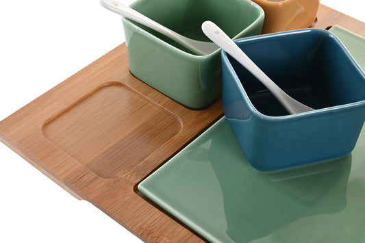 APERITIVO SET 8 BAMBU PORCELANA 30X30X6 MULTICOLOR