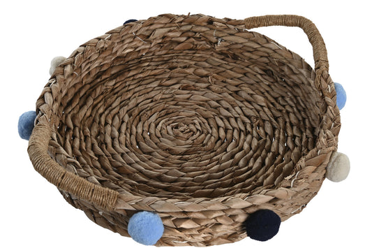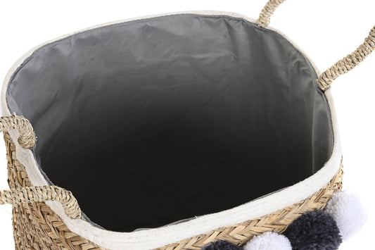 CESTA SET 3 SEAGRASS POLIESTER 43X43X43 POMPONES