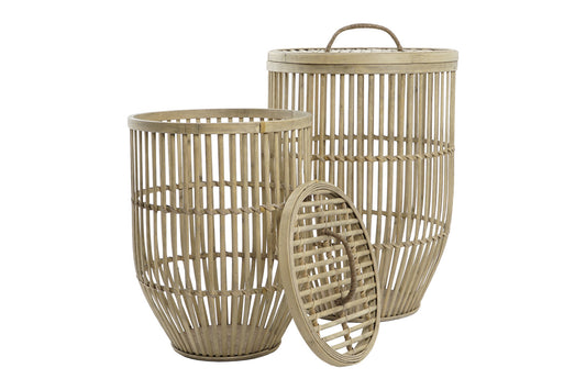CESTA SET 2 BAMBU 40X40X61 CON TAPA NATURAL