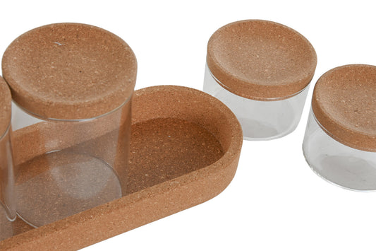 BOTE SET 5 BOROSILICATO CORCHO 26X10X12 ALGODONERO