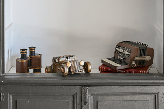 VEHICULO DECORACION METAL 28X12X9 BOLIDO CHAMPAN