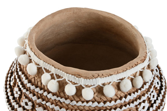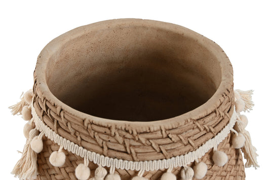 MACETERO CEMENTO 34X34X26 POMPONES MARRON