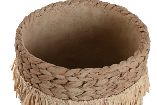 MACETERO SET 2 CEMENTO RAFIA 23X22X25 FLECOS