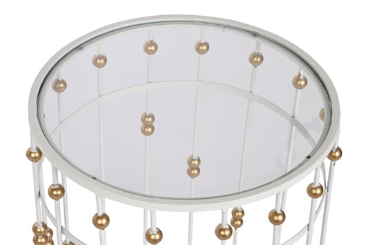 MESA CENTRO METAL CRISTAL 82X82X45 BLANCO