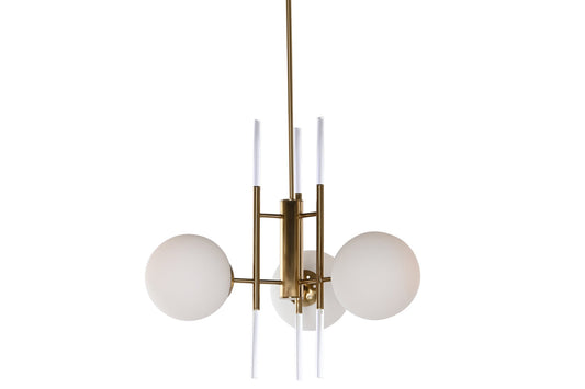 LAMPARA TECHO METAL CRISTAL 50X50X144 BOLAS DORADO