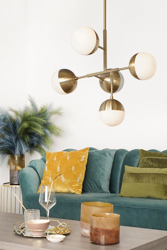 LAMPARA TECHO METAL CRISTAL 74X52X168 E14 5 BOLAS
