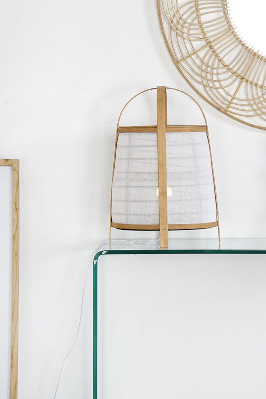 LAMPARA SOBREMESA MADERA POLIESTER 30X30X72 BLANCO