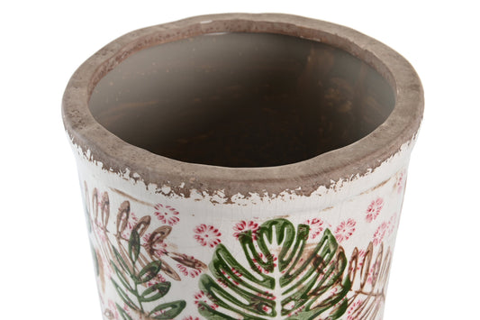 JARRON GRES 14X14X25 HOJAS BLANCO