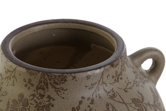 JARRON GRES 21X20X16 HOJAS MATE MARRON