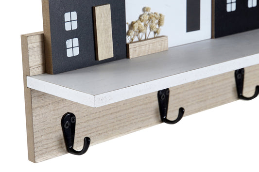 ESTANTERIA PARED MDF 39X9X27 PERCHERO X4 NATURAL
