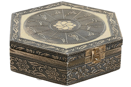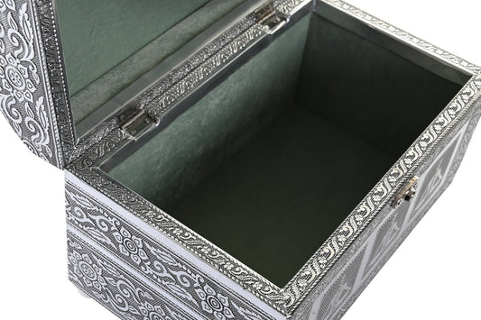JOYERO MADERA ALUMINIO 25X15X18 CHAKRAS PLATEADO