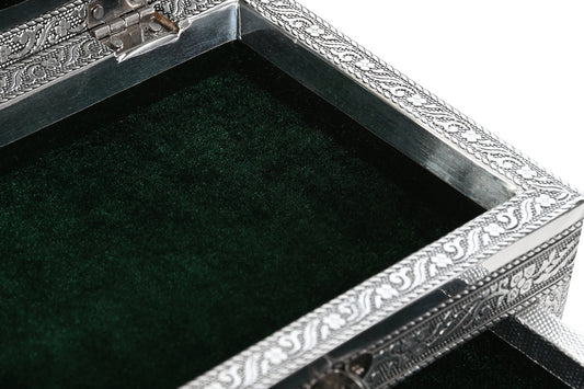 JOYERO MADERA ALUMINIO 18X18X6 PAVO REAL PLATEADO