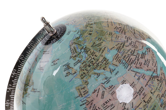 GLOBO TERRAQUEO METAL PLASTICO 27X25X61 PIE BLANCO