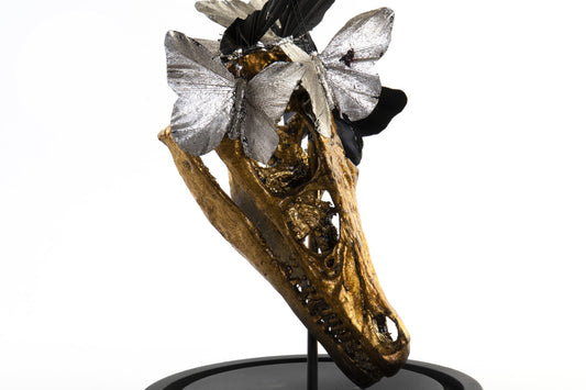 FIGURA RESINA CRISTAL 17X17X26 CRANEO DORADO