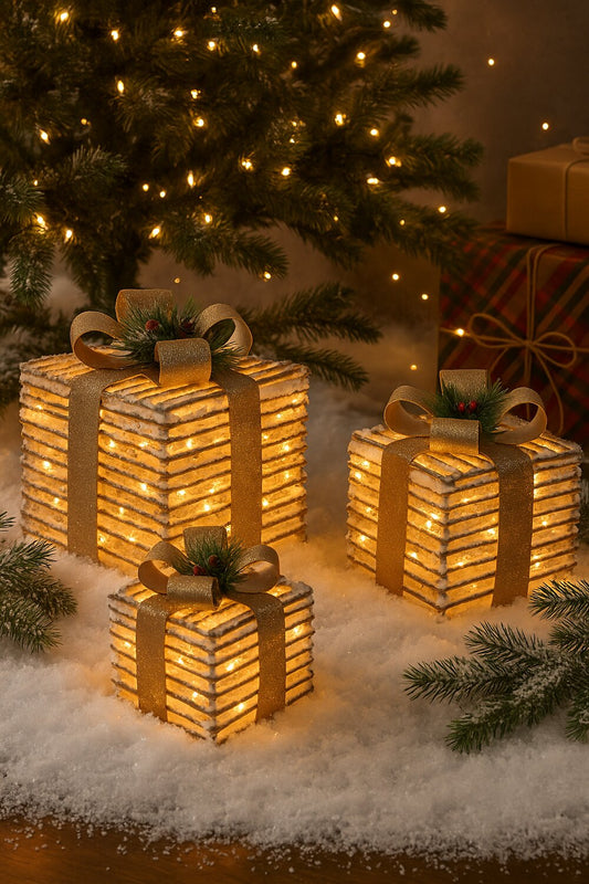 REGALO SET 3 LED RATAN 25X25X25 BLANCO