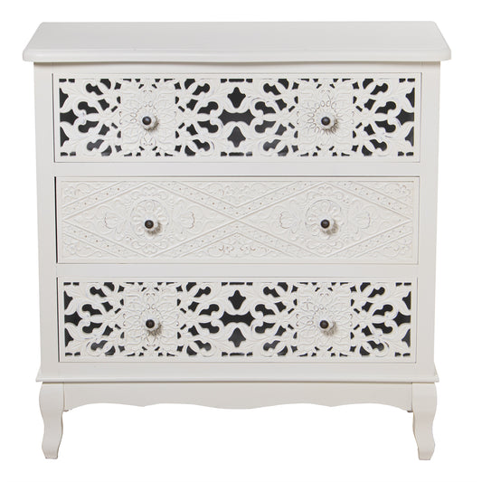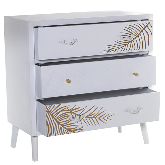 COMODA MADERA C/3 CAJONES BLAN CO RELIEVE+HOJA DORADA