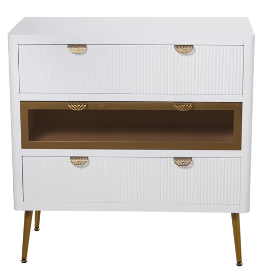 COMODA MADERA C/3 CAJONES BLAN CA/DORADA