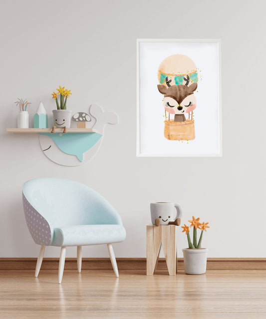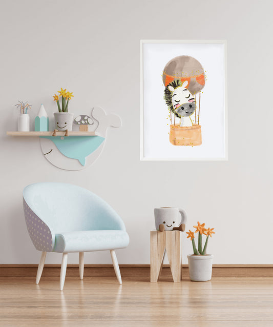Set 3 cuadros infantiles formado por cuadro cebra en globo: cuadro oso en globo y cuadro jiraba en globo