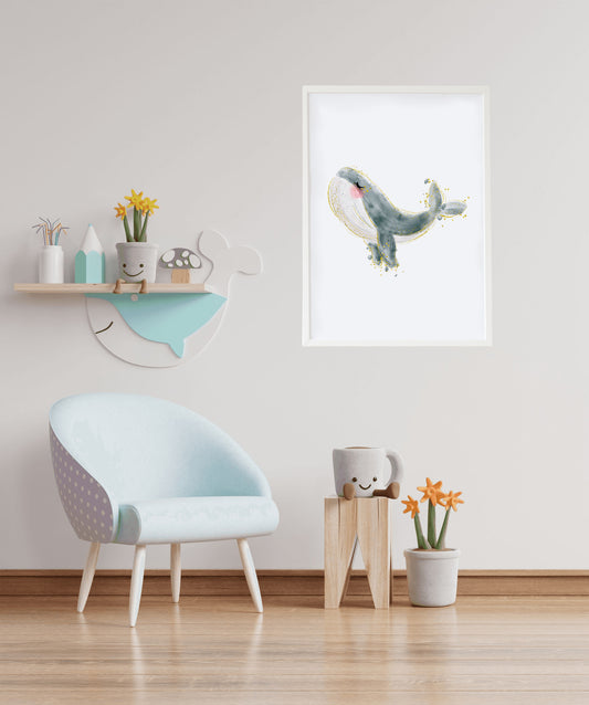 Set 3 cuadros infantiles formado por cuadro ballena gris con globos: cuadro ballena rosa con globos y cuadro arcoiris gris