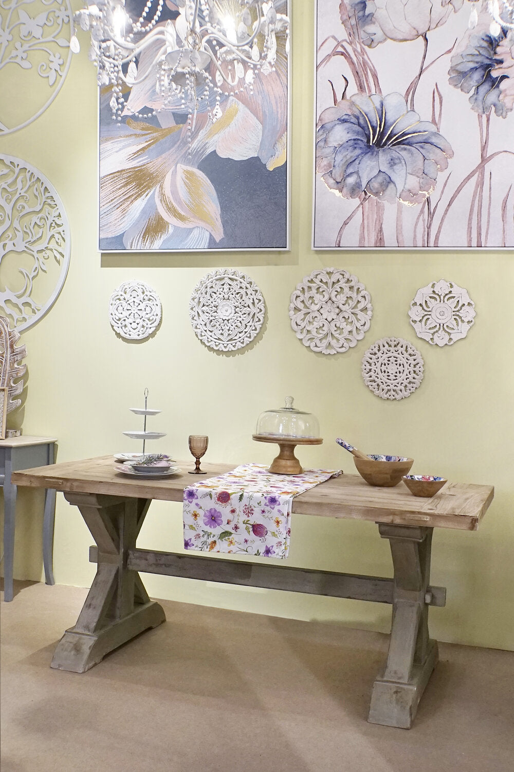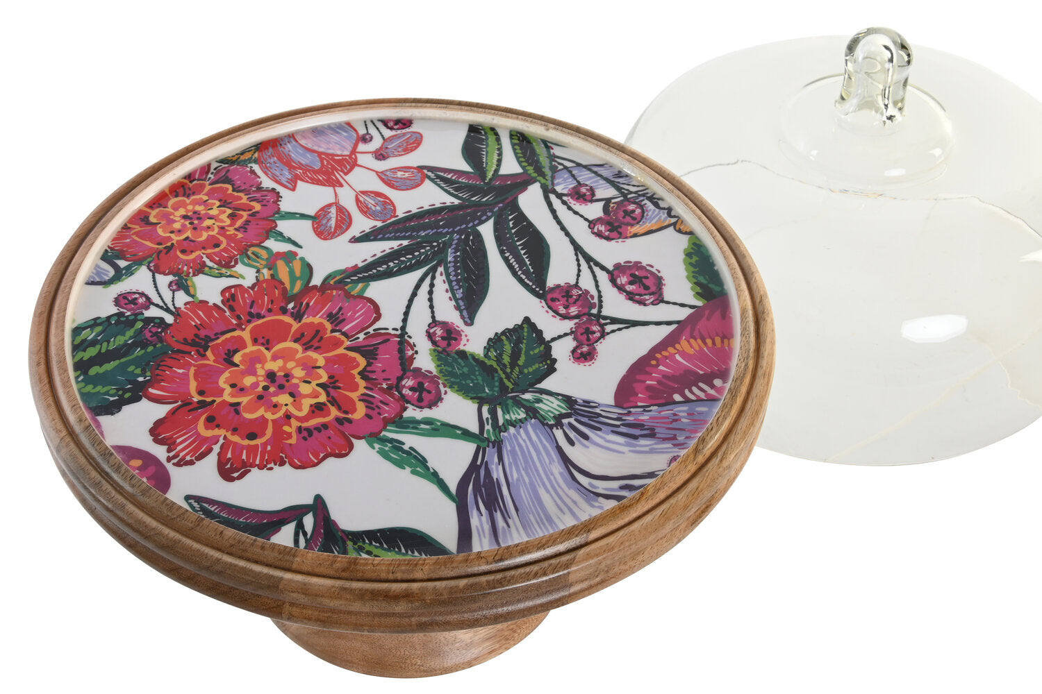 BANDEJA MANGO CRISTAL 30X30X33 FLORES ESMALTADO