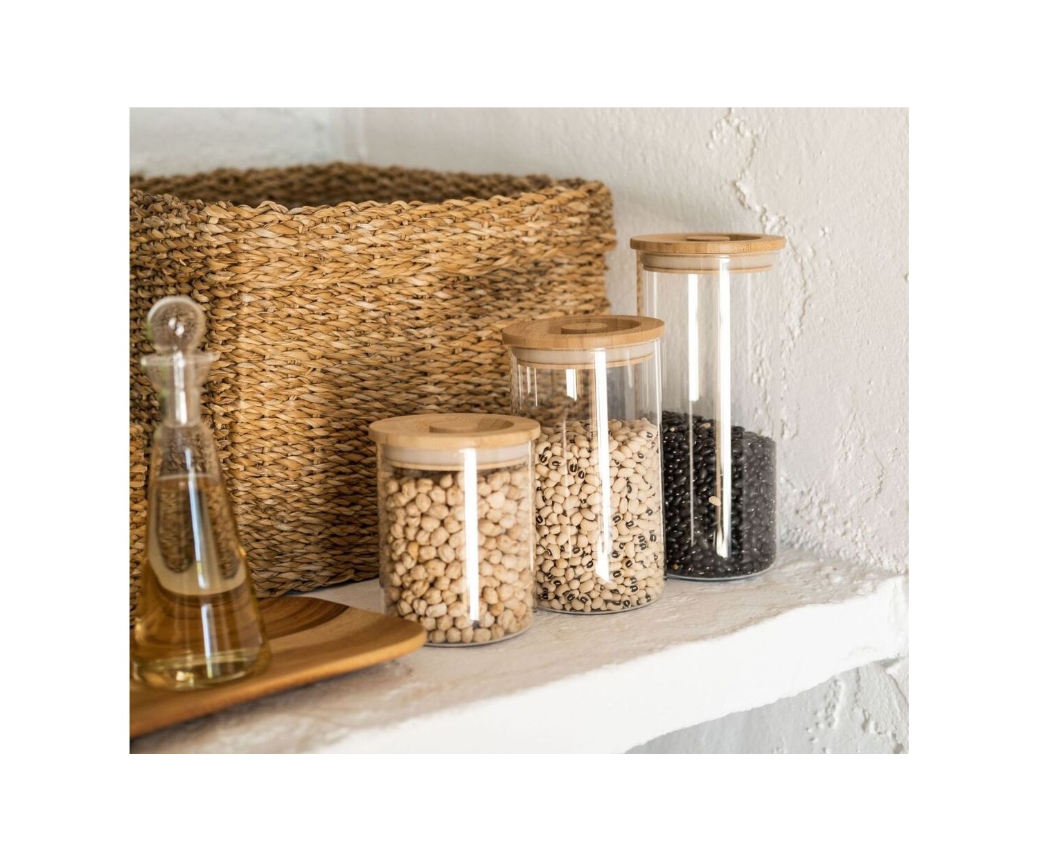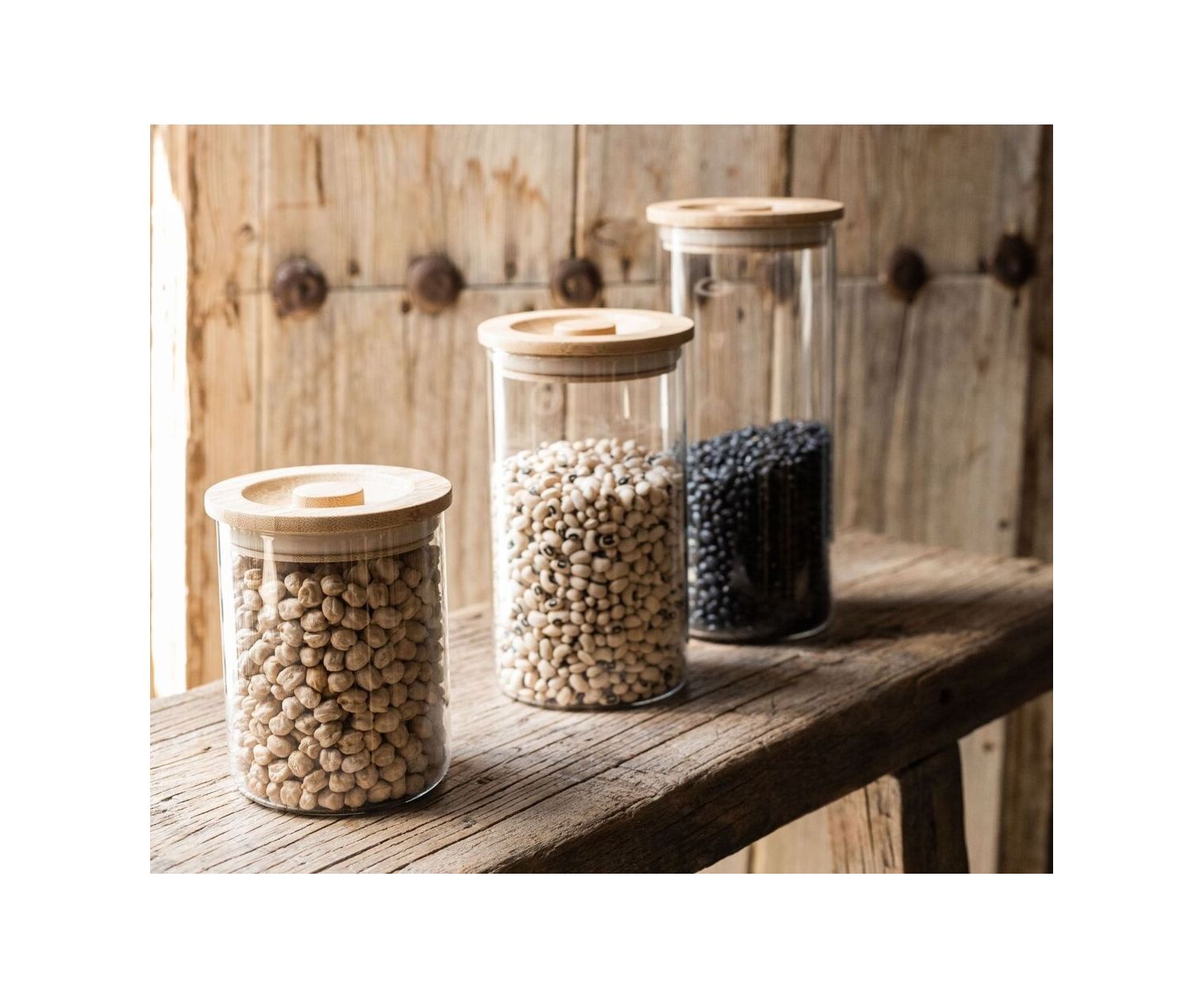 BOTE VIDRIO TAPA BAMBÚ Ø10X22