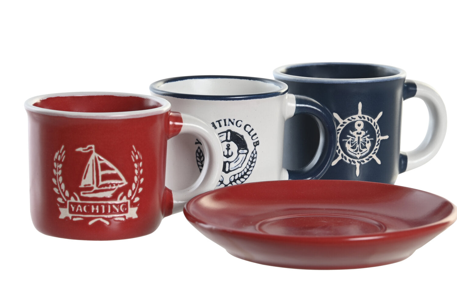 CAFE SET 6 GRES 11X11X2 90ML: GRABADO AZUL