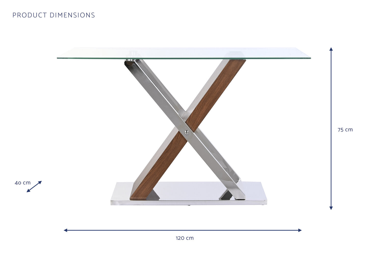 CONSOLA ACERO CRISTAL 120X40X75 TRANSPARENTE