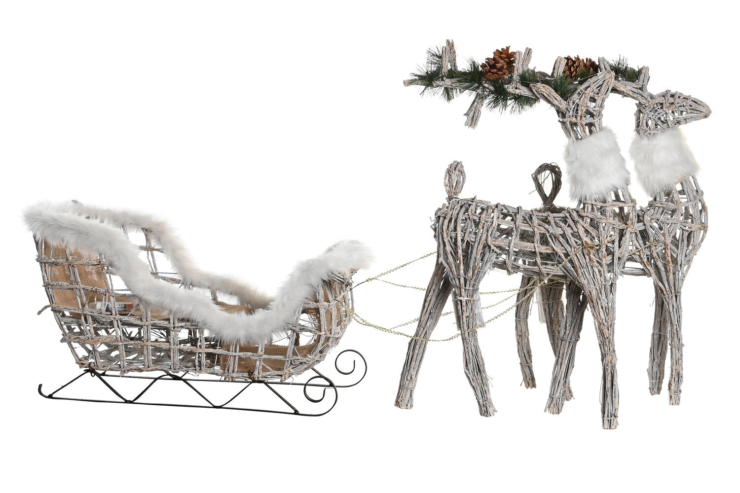 DECORACION SET 3 LED MIMBRE 60X30X37 BLANCO