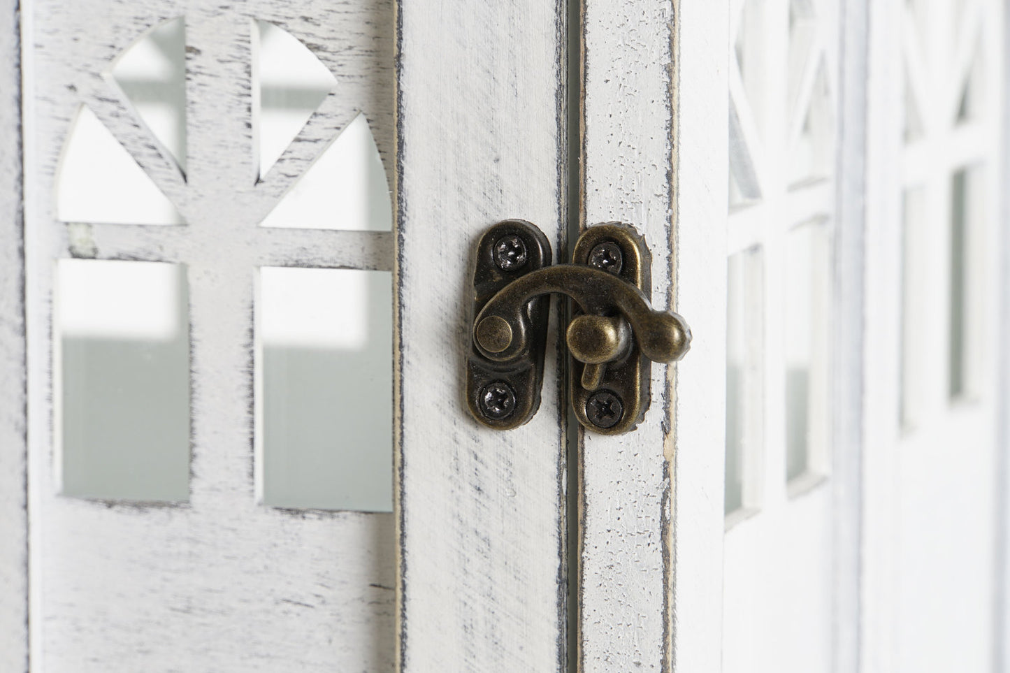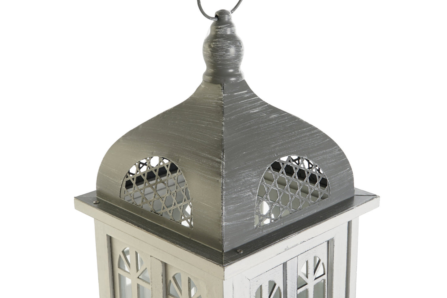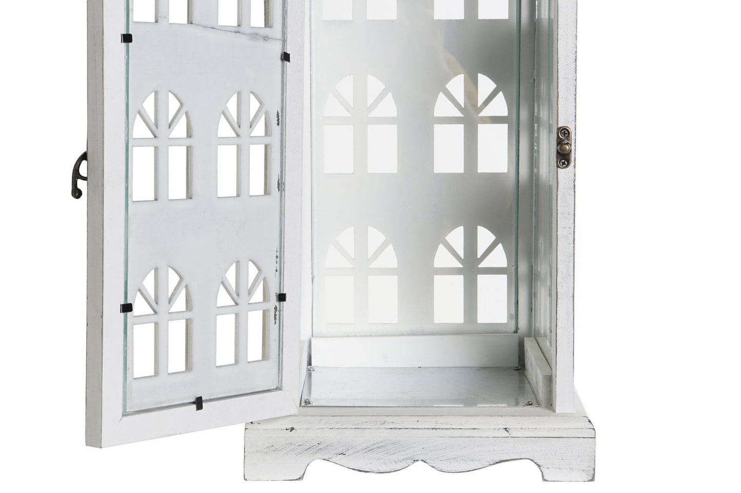 FAROLA MADERA CRISTAL 19X19X51 ENVEJECIDO BLANCO
