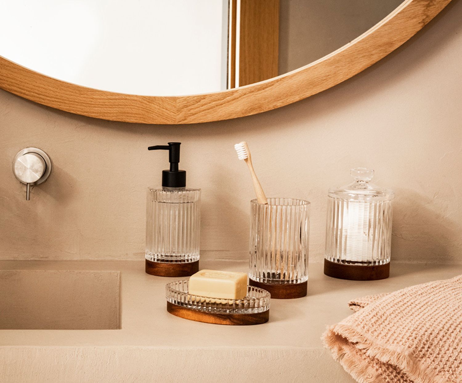 JABONERA BAÑO CRISTAL MADERA 14X3CM
