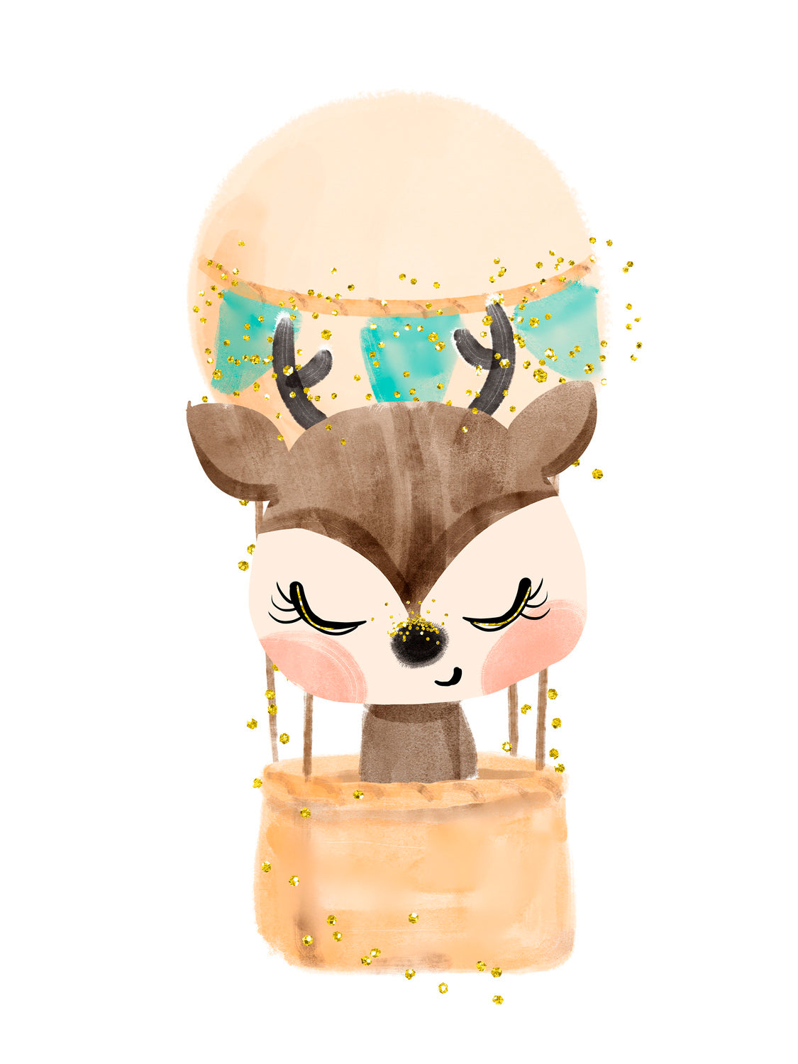 Lámina infantil ciervo maron en globo naranja