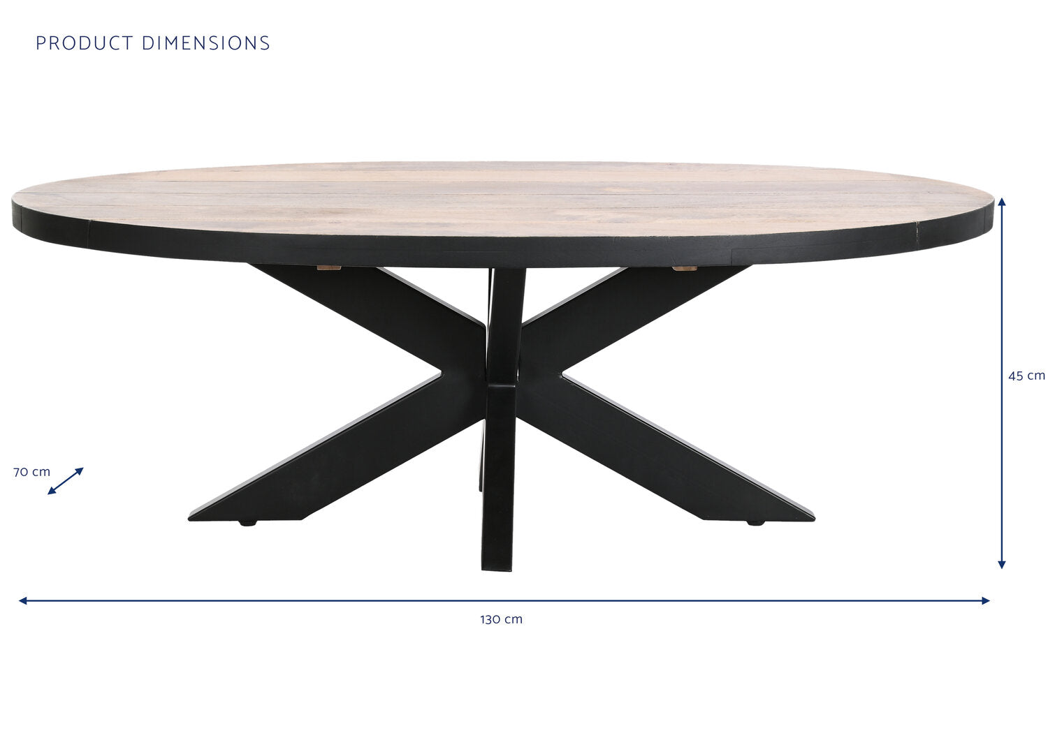 MESA CENTRO METAL MANGO 130X70X45 NATURAL