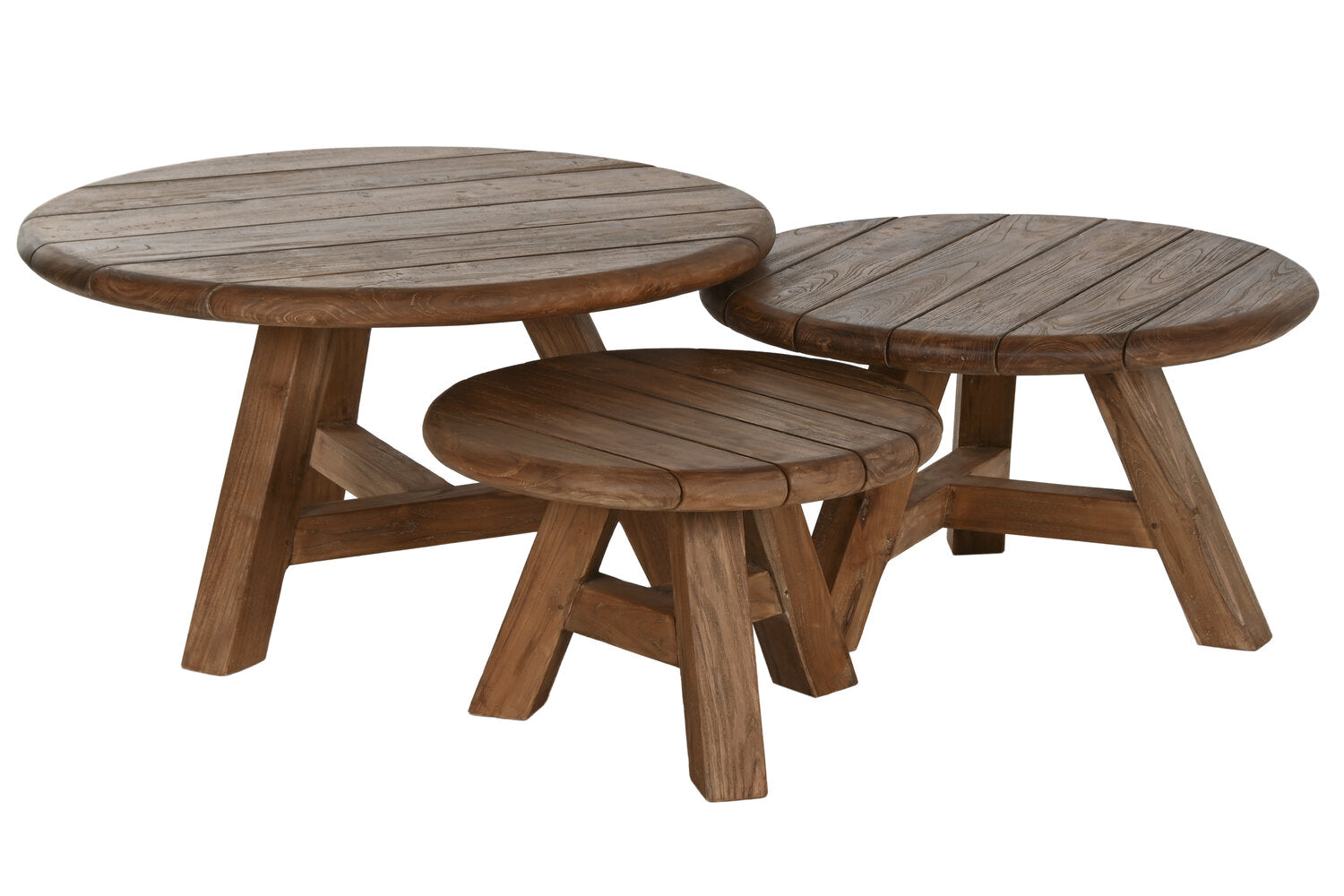 MESA CENTRO SET 3 TECA RECICLADA 80X80X43