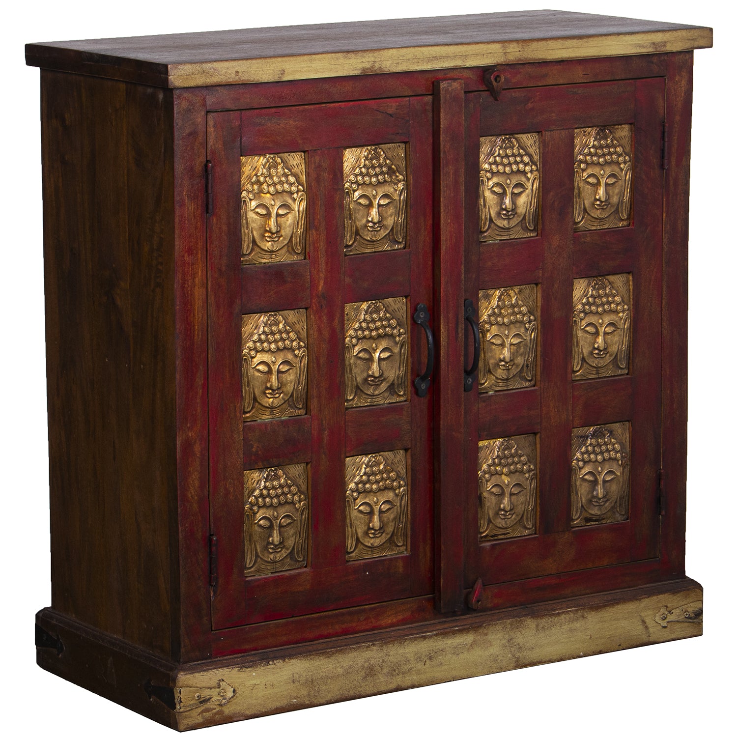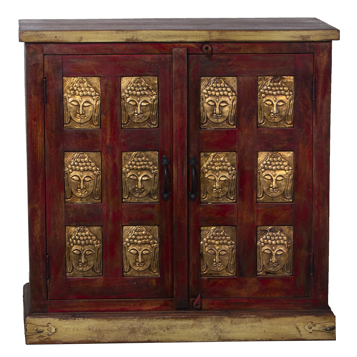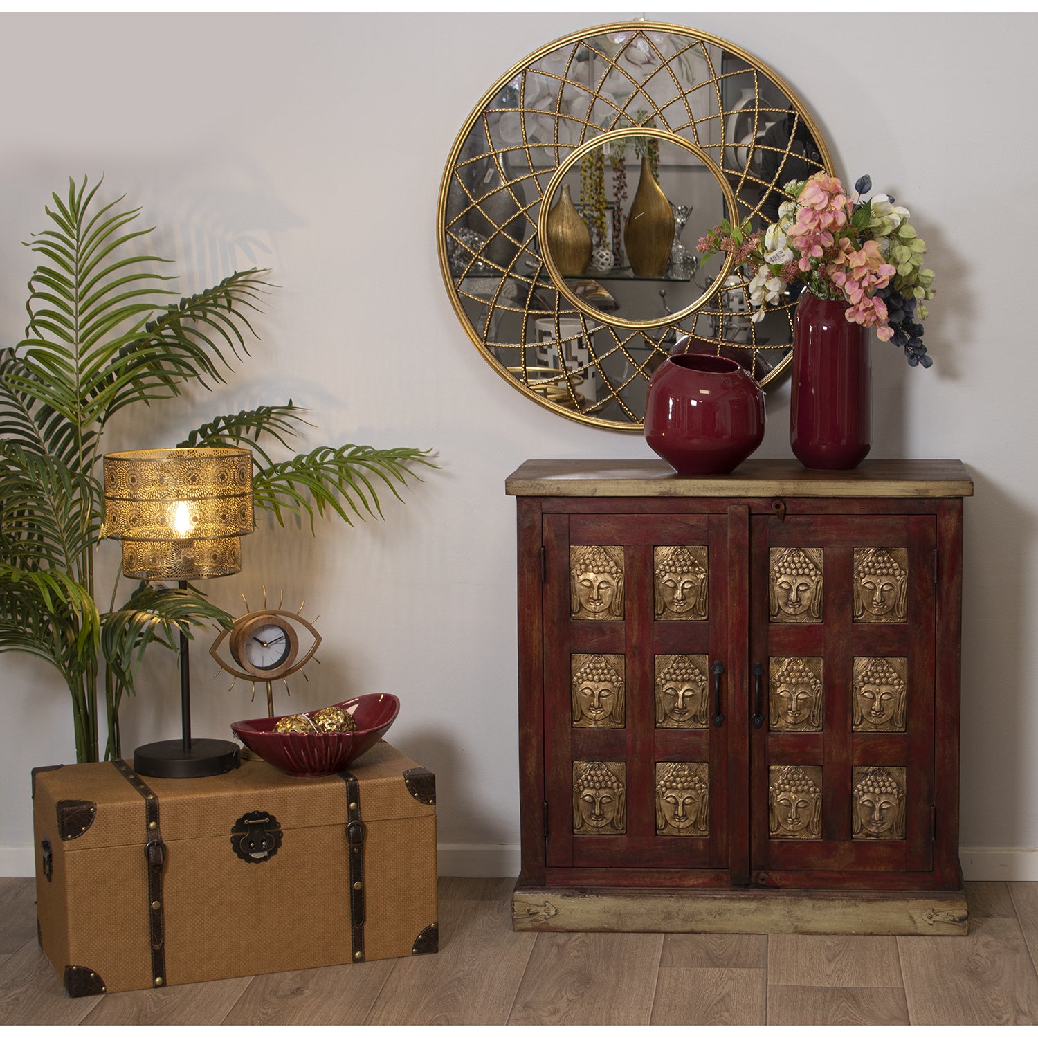 MUEBLE ENTRADA MADERA MANGO C/ 2 PUERTAS ROJO/BUDAS DORADOS