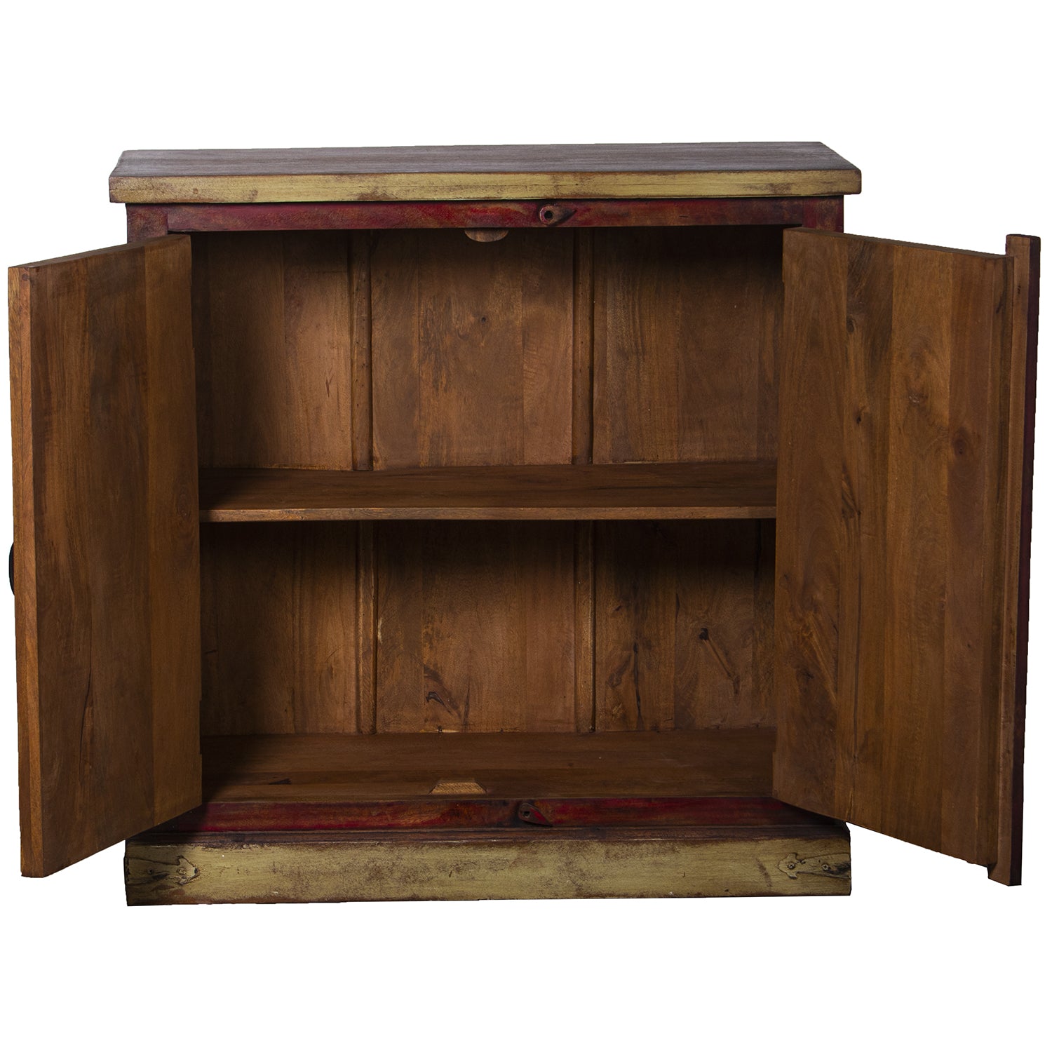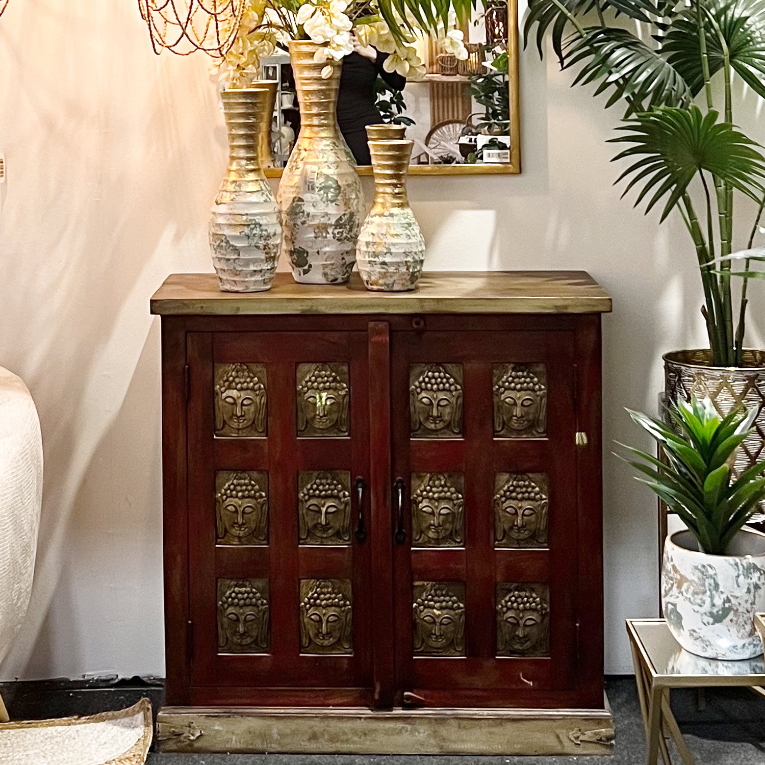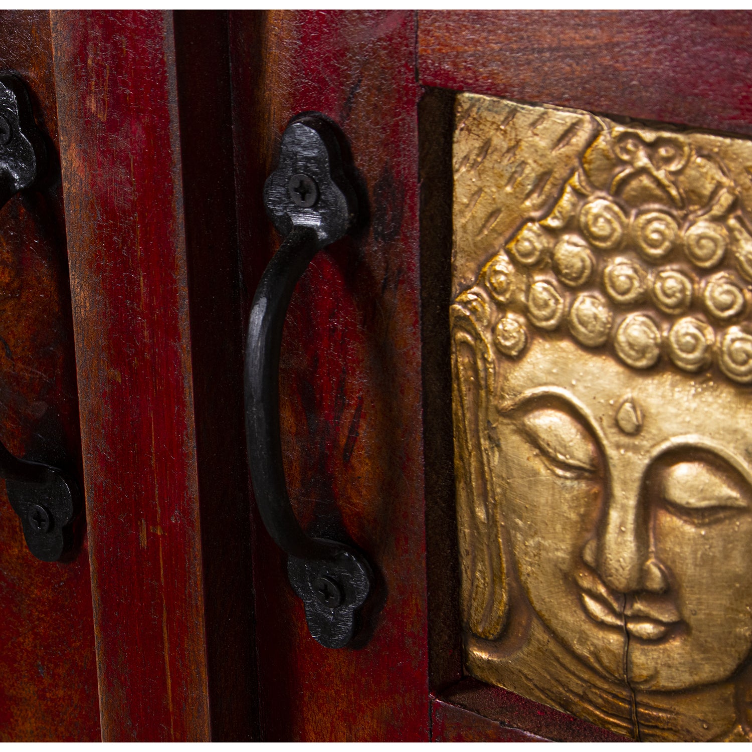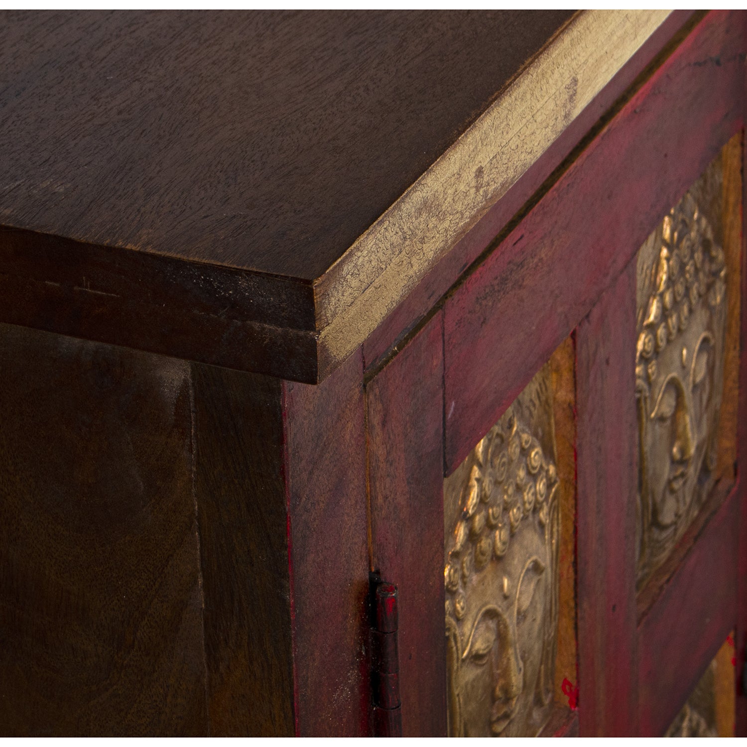 MUEBLE ENTRADA MADERA MANGO C/ 2 PUERTAS ROJO/BUDAS DORADOS