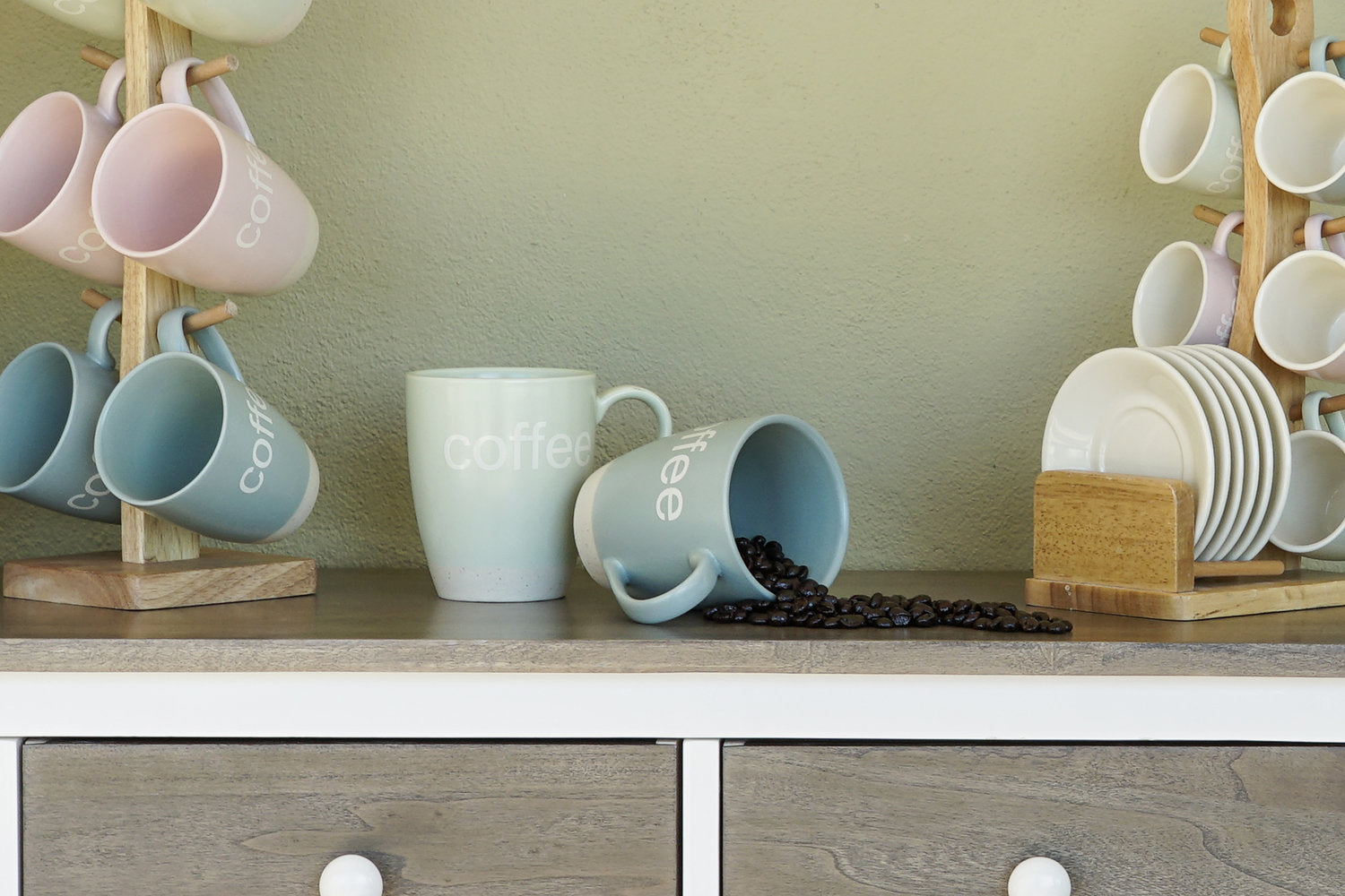 MUG SET 4 GRES RUBBERWOOD 19X13X31 300 ML: BEIGE